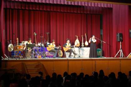 11月6日(金)民族楽器・地球まるごと のテーマで、音楽工房の皆さんによる鑑賞会が開かれました。オープニングから、スペインの楽器演奏とダンスで子どもたちの心をつかみ、日本・西アジア・南米と、世界の楽器を使った音楽が続きました。動物や魚・蛇などの体や皮で作られた楽器のことや、弦楽器がどのように伝わり変化していったかのお話を聞きながら、世界の音楽を楽しむことができました。各学年の代表児童が舞台に上がって体験するコーナーでも、全員が手拍子を打ち、楽しい合奏となりました。最後は、舞台に並べられた珍しい楽器を身近に見ることもでき、楽しい鑑賞会となりました。