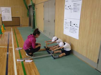 今日は市岡グランドで全学年スポーツテストを行う予定でしたが、昨日からの雨天のため市岡グランドが使用できませんでした。そのため、体育館で行う種目の測定を各学年行いました。それぞれの種目に子どもたちは一生懸命取り組んでいました。
