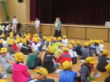 教頭先生からは、訓練だからといっていい加減な気持ちではなく、もし本当に災害が起こったときに体と頭が安全な避難の方法を覚えるために、真剣な気持ちで取り組むことの大切さのついて話がありました。