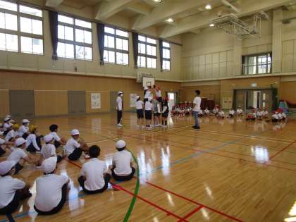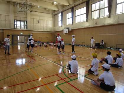 1年生と6年生が運動会の団体競技の練習を行っていました。1年生は玉入れ、6年生は騎馬戦の練習でした。1年生は小学校での初めての運動会、6年生は小学校生活最後の運動会になります。中学校のグランドでの開催となりますが、子どもたちは自分の目標を決めてがんばっています!