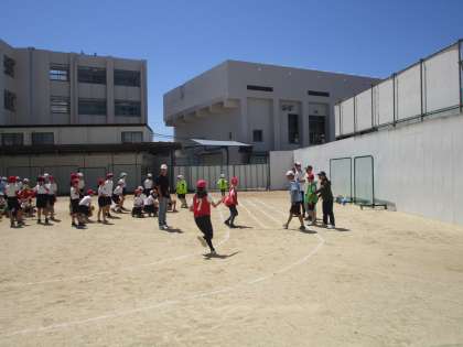 昨日の雨模様とは打って変わって今日はとてもいい天気になりました。日陰は涼しいですが、日差しは強い一日でした。その中で子どもたちは運動場で運動会の練習に取り組んでいました。限られたスペースではありますが、トラックのラインを引き、工夫して練習を行っています。5・6年生はリレーのバトンパスの練習、5年生は初めて棒引きの練習をを行いました。