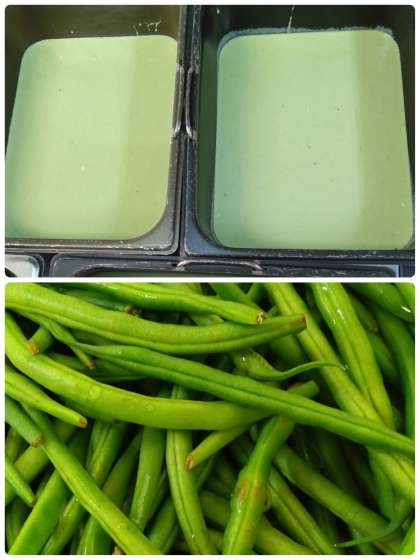 かやくご飯に使われているさんどまめは冷凍ではなく、生のさんどまめが使われています。柔らかくておいしいです。