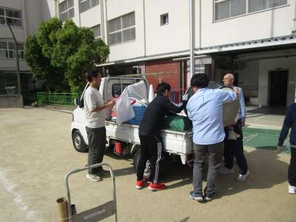 地域の方にトラックを出していただき、荷物の運搬をしていただきました。お忙しい中、ご協力をいただきましてありがとうございました。
