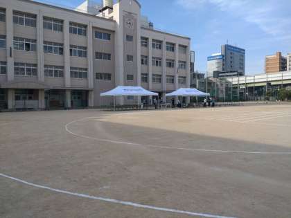 放課後は先生方が市岡中学校のグラウンドで準備を行いました。市岡中学校の生徒の皆さんにも協力していただきました。ありがとうございました。