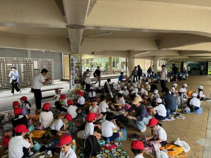 小雨がパラつく時もありましたので、お弁当は動物園内の屋根のある広場で食べました。テンシバの広場で食べれる予定でしたので残念でしたが、子どもたちは喜んでお弁当、おやつを食べていました。
