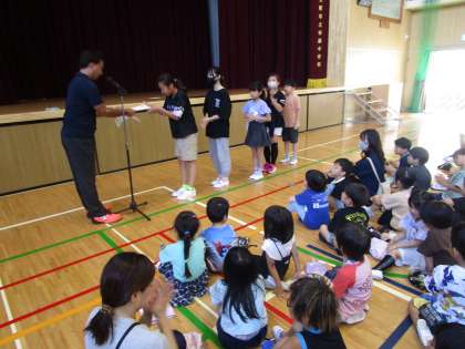 4年・5年・6年生の表彰の様子です。高学年になると大人顔負けのスピードでタイピングを行っています。積み重ねることの大切さを子どもたちの姿から学ぶことができます。ご家庭でも機会がありましたら練習をさせてあげてください。