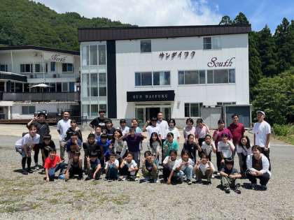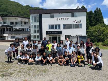 宿舎の前で記念撮影です