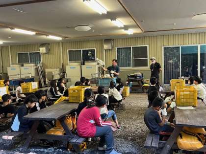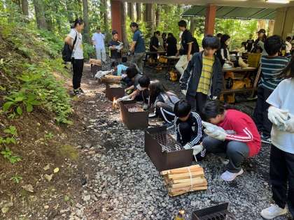 いよいよカレー作りが始まりました。活動班でカレー作りの分担をきめ、指導員の方の説明を聞いて調理が始まりました。
