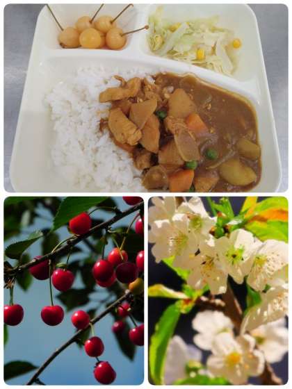 今日の給食では、山形県産のさくらんぼが提供されました。