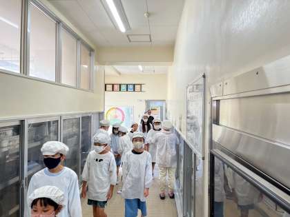 今日の給食には、一口がんもとさといもの味噌煮とみたらしだんごがでました。