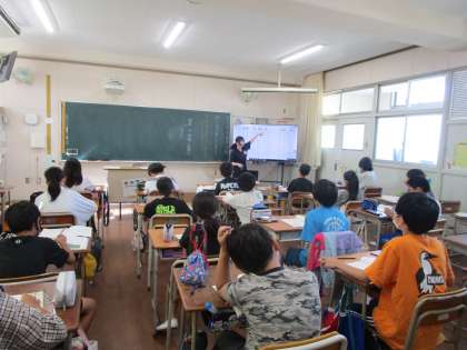 6年生は理科で水溶液の性質の学習に取り組んでいました。今日は蒸発皿で水溶液を蒸発させ、どのような物質が残るのか調べていました。また、9月から始まった教育実習では、今日から国語の授業を実習生が行っていました。緊張しながら授業を行っている様子が伝わってきました。