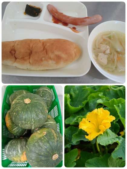 ・焼きカボチャ ・おさつパン ・牛乳