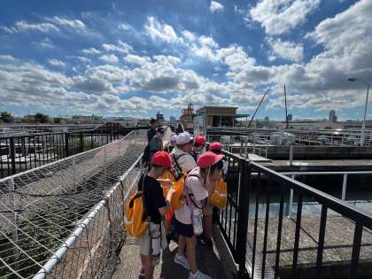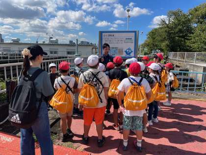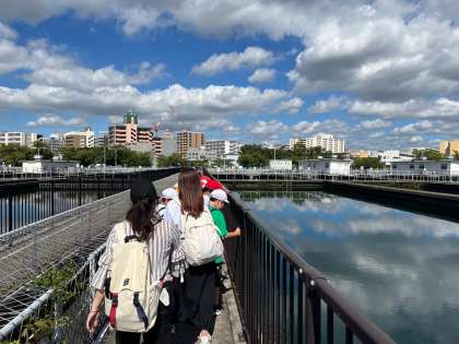 4年生は柴島浄水場に社会見学に出かけました。淀川から引き込まれた水がどのような過程で家庭まで届くのか、実際に沈殿池などを見てわかりやすく教えていただきました。