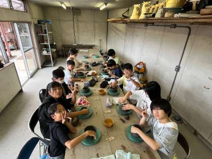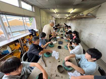 宗陶苑に到着し、作陶が始まりました。職人さんの説明を聞いて作り始めます。