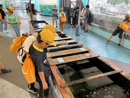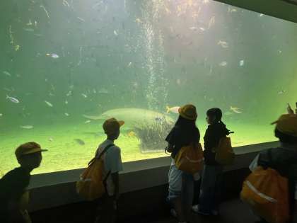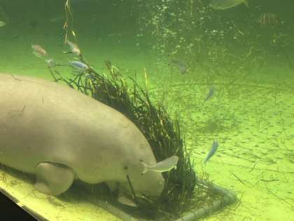 鳥羽水族館で一番有名なジュゴンはとてもかわいいと子どもたちは喜んでいました。水槽にてを入れて触れるコーナーもあります。