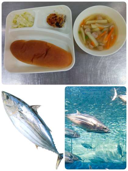 ・カツオのガーリックマリネ焼き ・ウィンナーとジャガイモのスープ
