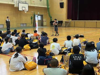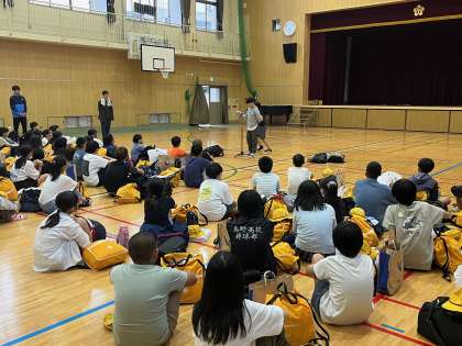 講堂で帰校式を行い、子どもたちは帰宅しました。