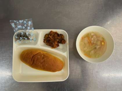 今日は子どもたちに人気のパンプキンパンでした。とてもやわらかく、少し甘味があり、食べやすいパンです。
