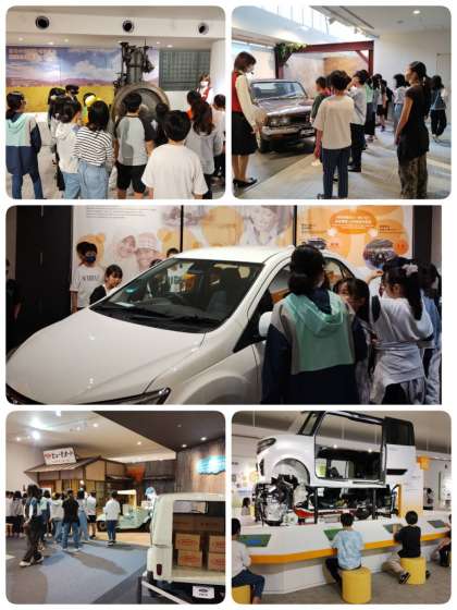 午後よりダイハツ工業本社内にあるヒューモビリティワールドへ社会見学に行きました。本社内では、動画で車が作られる工程や様子を見せていただきました。つぎに1950年代から現在の自動車まで展示されてていました。中には非常に貴重な自動車の展示もあり間近で見学させていただきました。自動車を見て時代とともに自動車が変化しているということに子どもたちも気づいていました。最後には体験スペースで自動車を作成する模擬体験をしてニーズに合った自動車を完成させることができました。