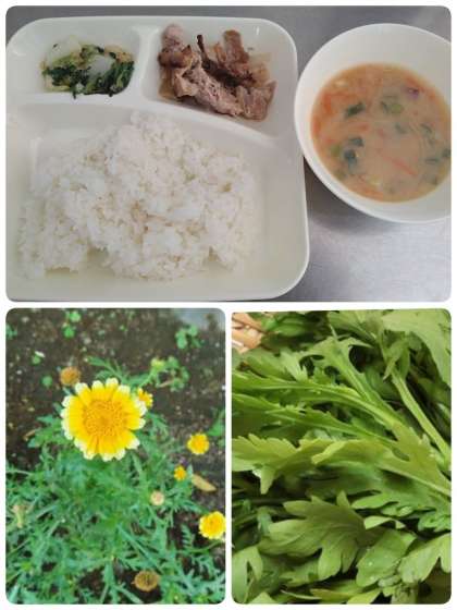 ・菊菜と白菜のゴマ和え ・ご飯 ・牛乳