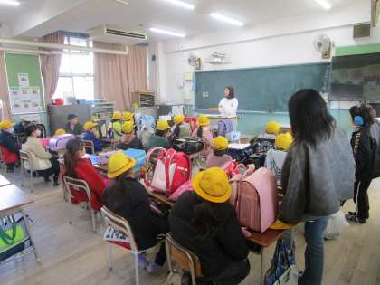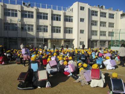 登下校の安全確認や集団登校の並び方など、再確認していました。朝、登校の安全を確保するための集団登校です。集合時刻に遅れることがないよう、そろって登校してもらいたいと思います。23日の終業式は、登下校時に見守り隊の皆様に子どもたちがしっかりあいさつできることを願っています。