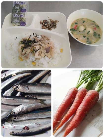 今日の給食は、正月の行事献立でした。正月には、「今年も幸せに過ごせますように…」と願って食べる料理があります。
