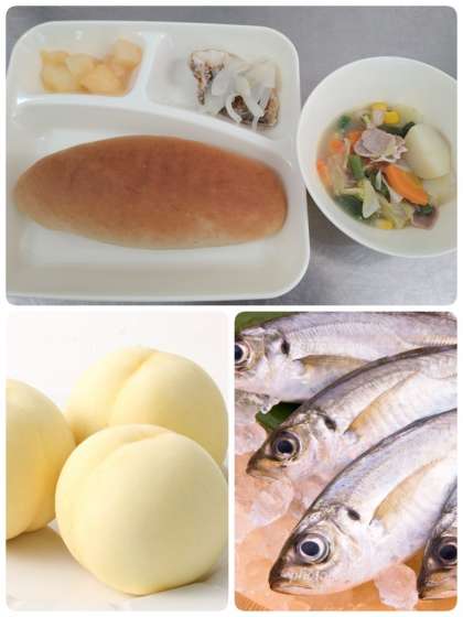 またアジは、日本近海でよく獲られる魚で、体をつくるタンパク質や脂質が含まれています。アジの脂質には、脳の働きをよくしたり、血の流れをよくしたりする働きがあります。今日の給食では、フライにしたアジをレモン汁等で煮たマリネとして登場しました。