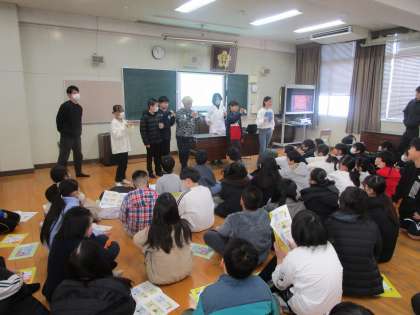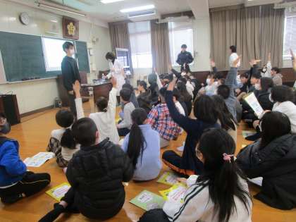 6年生は学校保健委員会の開催を兼ねて、薬剤師先生によるお薬についての講座がありました。子どもたちは薬を服用する時の注意点を聞き、改めて決められた通り服用することの大切さを感じていました。炭酸水で薬を飲むと、どのような反応があるか実際に実験をして確かめました。泡がたくさん発生する様子を見て、水で飲むことの理由がわかりました。PTAの皆様にもご参加いただきましてありがとうございました。