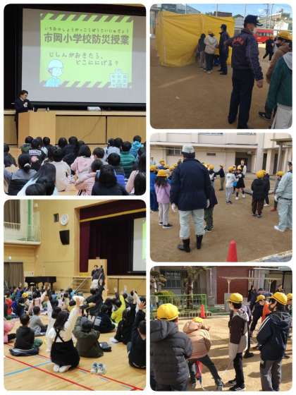 まず1時間目終了時刻に合わせて避難訓練を行いました。学校では、今年度も火事や地震発生を想定しての避難訓練を複数回実施していますが、今回も避難の合図とともに、全児童が静かに運動場に集合しました。そこで校長先生から、本日の防災学習の趣旨でもある「自分の安全は自分で守る」という話を聞きました。