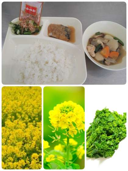 ・菜の花のおひたし ・かつお節 ・ご飯 ・牛乳