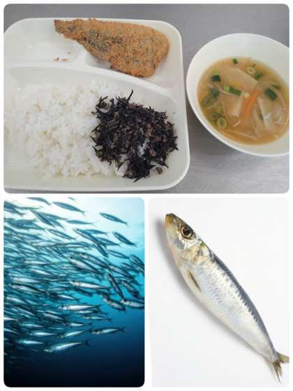 今日の給食では、イワシフライとして登場しました。骨ごと食べられるため、骨や歯を強くするカルシウムもたくさん摂取することができます。