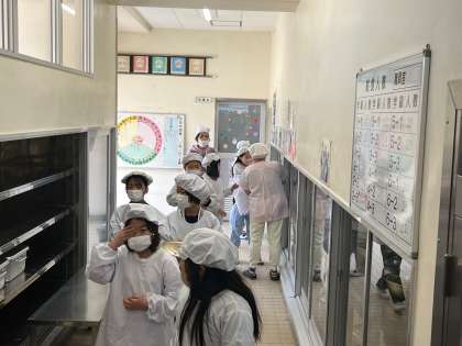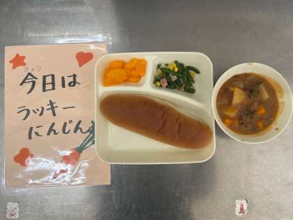 コッペパン、黒糖パン、おさつパン、レーズンパン、パンプキンパンがあります。1週間に2回、パンの日があります。