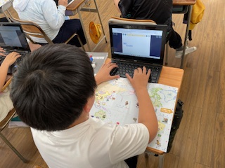 5年生は、社会科で国を当てるクイズに取り組みました。