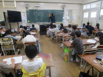 2年生の様子です。算数科で引き算の筆算の仕方について学習していました。ノートのマス目を使って、位がずれないように気を付けていました。