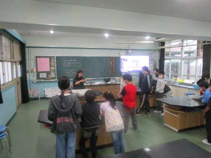 5年生は理科室で理科の学習に取り組んでいました。ヨウ素液を使って、デンプンが含まれているかどうかを調べていました。