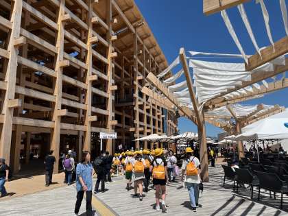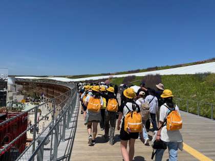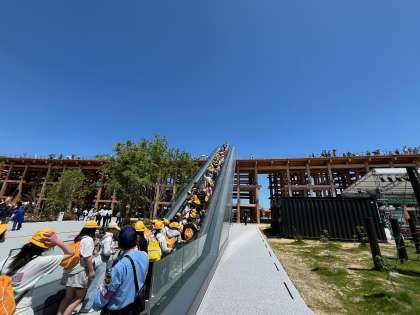 入場した後、まず大屋根リングを歩きました。近くで見ると大変立派な建造物でした。リングの上から見える景色は素晴らしいものでした。