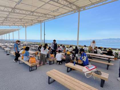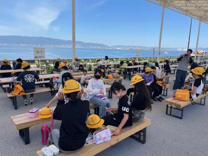 神戸の町が遠くに見える景色のいい休憩所でお弁当を食べました。