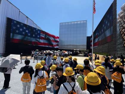 アメリカパビリオンに入場することができました。多様性の社会を伝えるメッセージが素晴らしい映像、音響を通して伝わってきました。月の石の展示もあり、子どもたちは興味深く見学していました。
