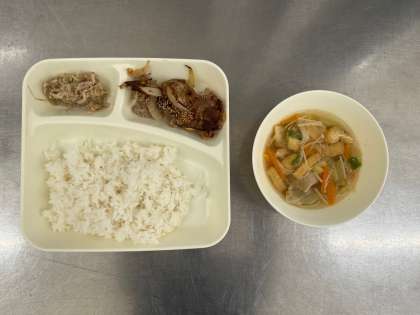 まぐろのことを英語でツナと言います。給食で使っているツナ缶の材料は、まぐろと綿実油、食塩です。まぐろはキハダマグロという種類を使っています。