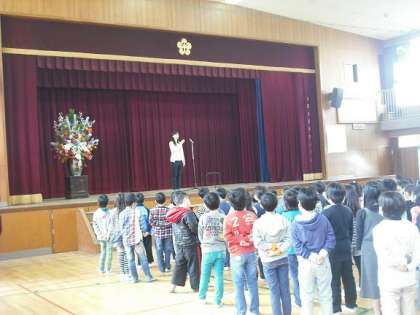 3月24日(月)講堂で修了式が行われました。校長先生から各学年に「修了証」が手渡され、「この一年間でがんばって学習や活動を終えた証明です。みなさんは、いろいろな力を身につけました。四月になると、新一年生も入学します。さらに素晴らしい市岡小学校になるようがんばりましょう」と話がありました。三年生の児童からは、一年間でがんばったことの発表があり、生活指導の担当の先生から春休みの諸注意がありました。最後に、全員で校歌を高らかに歌い、今年度を締めくくりました。保護者や地域の皆様には、今年一年本当にお世話になりました。次年度もよろしくお願いいたします。