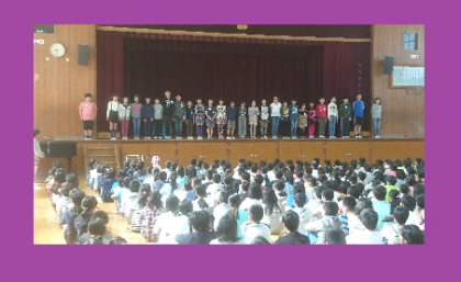 児童集会は、各委員会の代表や学級代表などの自己紹介でした。