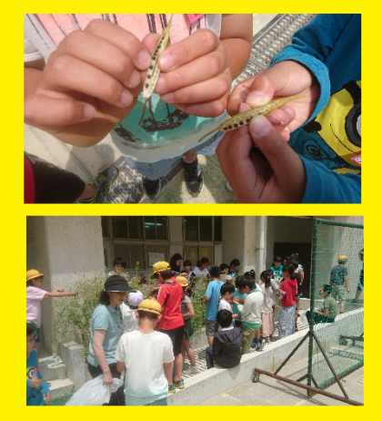 5年生は、きのうアブラナの種のでき方を観察しました。