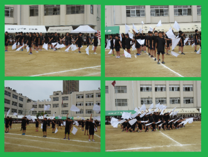 ・ 一糸乱れぬ集団行動と、フラッグを使った動きは、」さすが6年生。