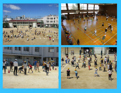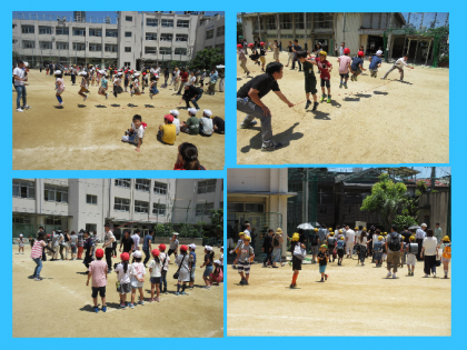 土曜授業のうち、1時間は、PTA学級委員さんが中心となって、なわとびやドッジボール、ドッジビーなどで子どもたちとの交流を深めました。