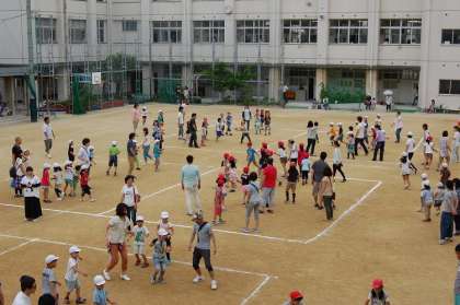 6月21日、土曜授業として、各学年2時間の学習参観と1時間の学級PTAふれあい活動を行いました。学習参観では、道徳や総合的な学習・外国語活動、算数の習熟度別学習なども公開し、子どもたちのがんばる姿を見ていただきました。ふれあい活動では、大人の方と子どもたちが入り混じって、ドッジボールや大縄とび、綱引き・シッポ取りなどを楽しんでいました。沢山の方が参加してくださり、充実した土曜授業となりました。