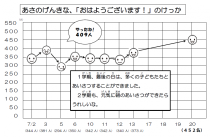 終業式の日には朝のあいさつは「452名」にもなりました。