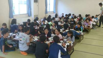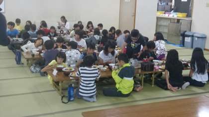 カレーから数時間。さすがにお腹は減ってないかなぁと思っていましたが、子どもたちは、元気に食べています。しゃべっています。さあ、しっかり食べて、キャンプファイヤー頑張ろうね!