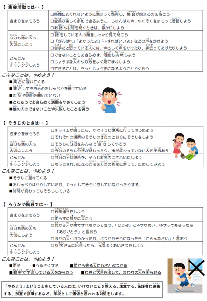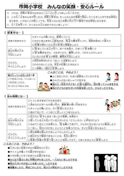 市岡小学校「みんなの笑顔・安心ルール」の活用