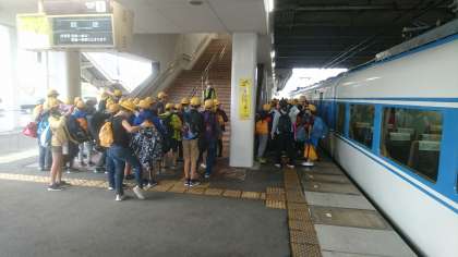 志摩磯部駅に到着しました。みんな元気ですが、雨です。
