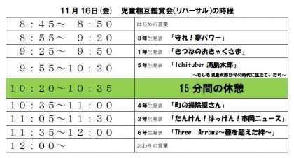 11月16日(金) 学習発表会のリハーサルについて